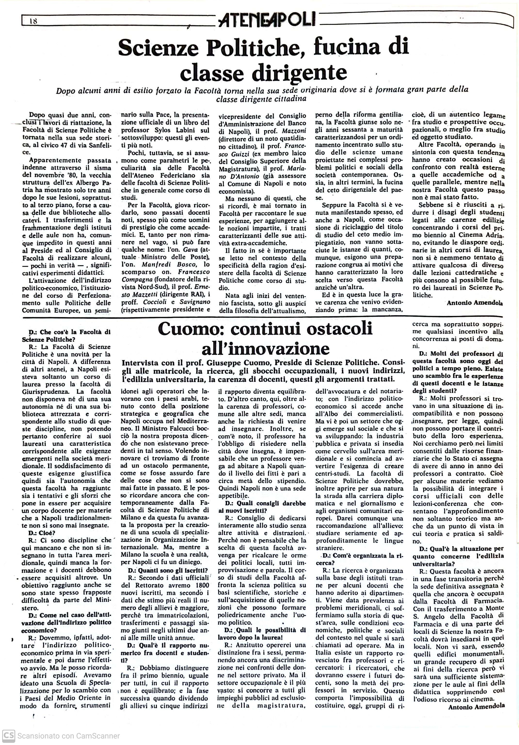 40 Anni Ateneapoli 1986 – Scienze Politiche, fucina di classe dirigente. La Facoltà torna nella sua sede originaria dove si è formata gran parte della classe dirigente cittadina 05/03/1986 0 362 Share FacebookTwitterWhatsAppEmailCopy URL ◼︎ Leggi ora l’articolo dall’archivio di ATENEAPOLI ◼︎ Vai alla pagina dedicata ai 40 anni Share FacebookTwitterWhatsAppEmailCopy URL Previous article1986 – Medicina I a Cappella Cangiani. Stanziati 36 miliardi per la riattazione di S. Andrea delle Dame e S. PatriziaNext article1986 (anno II) Num. 4 di Ateneapoli del 10 marzo Desk3 - Advertisement - Articoli Correlati Parthenope “Un valore aggiunto” le classi composte da studenti di Paesi diversi 13/10/2025 Federico II Un “tirocinio extracurriculare a Boston” per alcuni studenti che “stanno vivendo un sogno” 13/10/2025 Federico II Vincenza Ferrara, laurea Magistrale a pieni voti con lode, racconta il suo percorso a Biologia 13/10/2025 Federico II Studi Umanistici e Scienze Sociali: i rappresentanti degli studenti di Link chiedono lo stop agli accordi di ricerca con Israele 13/10/2025 Federico II Emanuela Barone neo Presidente del parlamentino studentesco di Dipartimento 13/10/2025
