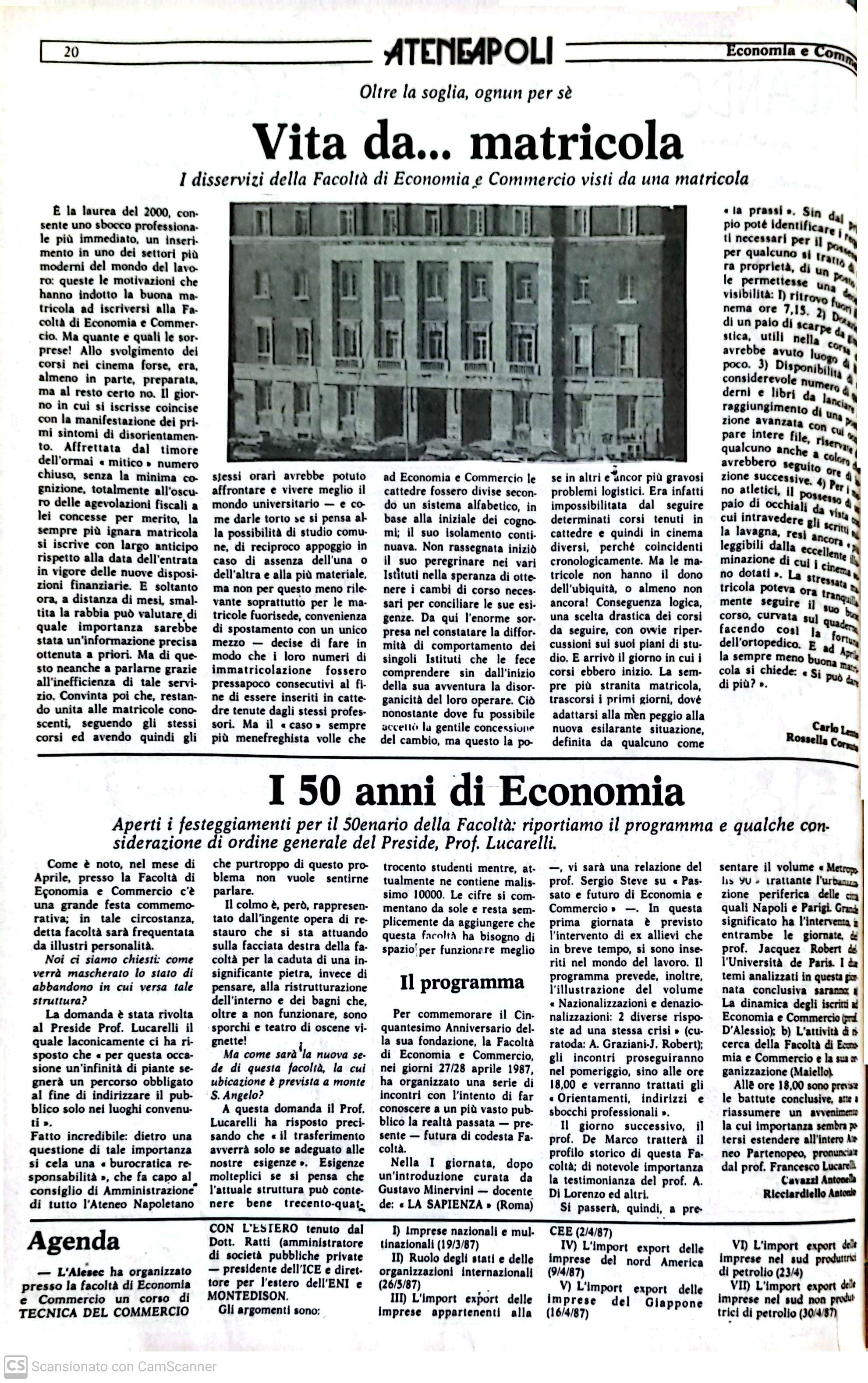 40 Anni Ateneapoli 1987 – I 50 anni di Economia, le considerazioni del Preside Lucarelli 05/03/1987 0 257 Share FacebookTwitterWhatsAppEmailCopy URL ◼︎ Leggi ora l’articolo dall’archivio di ATENEAPOLI ◼︎ Vai alla pagina dedicata ai 40 anni Share FacebookTwitterWhatsAppEmailCopy URL Previous article1987 – È guerra tra i due Policlinici. Gaetano Salvatore, Preside di Medicina II: “Il contenitore sa tanto di nettezza urbana”Next article1987 – Progetto Erasmus, una Università senza frontiere Desk3 - Advertisement - Articoli Correlati Federico II Scienze e Tecnologie della Chimica Industriale. Priorità: “monitorare come sta funzionando il nuovo regolamento” 14/10/2025 L'Orientale Almamed, un progetto per “far comunicare le varie aree del Mediterraneo” attraverso gli archivi letterari 14/10/2025 Parthenope “Un valore aggiunto” le classi composte da studenti di Paesi diversi 13/10/2025 Federico II Un “tirocinio extracurriculare a Boston” per alcuni studenti che “stanno vivendo un sogno” 13/10/2025 Federico II Vincenza Ferrara, laurea Magistrale a pieni voti con lode, racconta il suo percorso a Biologia 13/10/2025
