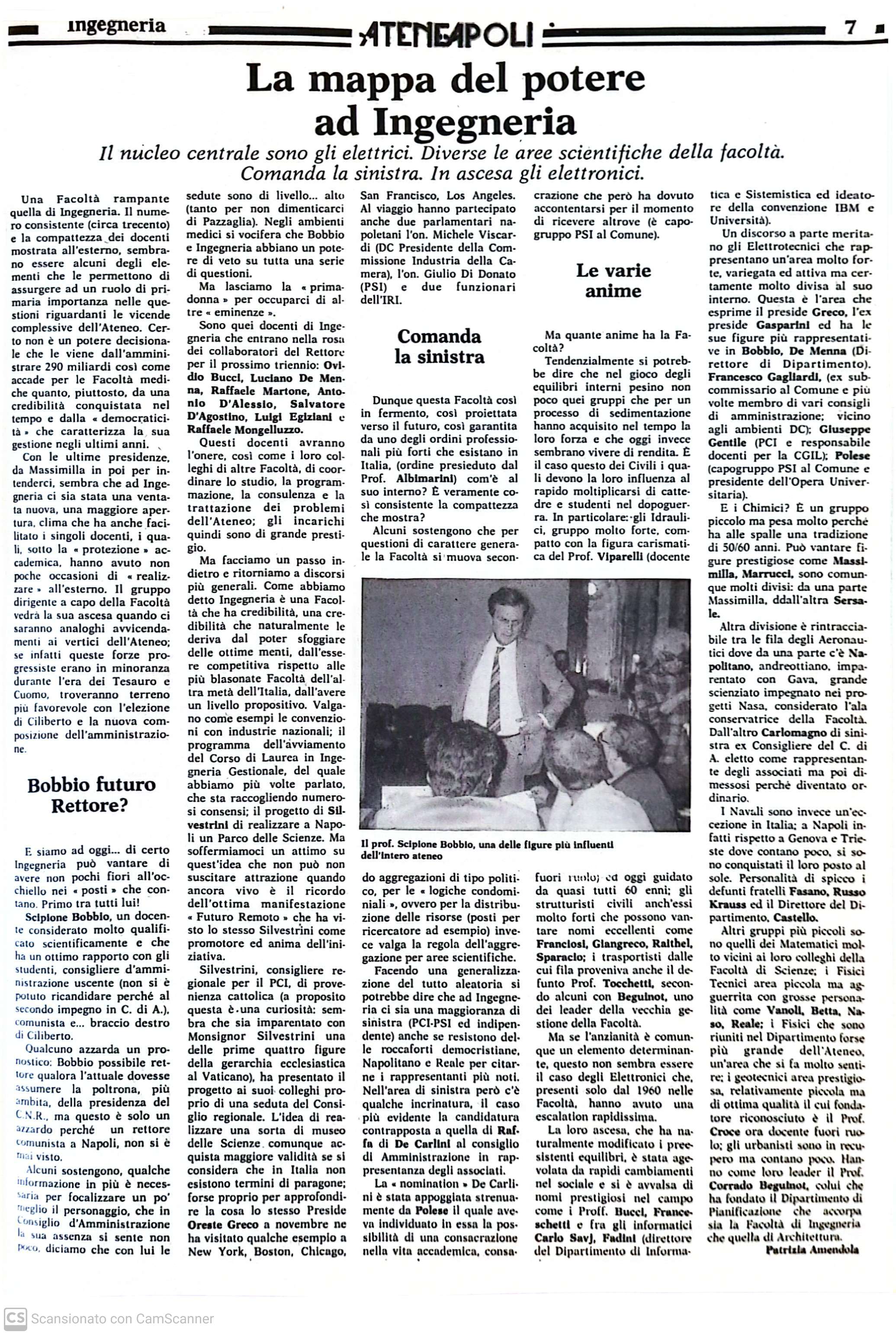 40 Anni Ateneapoli 1988 – La mappa del potere ad Ingegneria. Il nucleo centrale sono gli elettrici. Diverse aree scientifiche della facoltà. Comanda la sinistra. In ascesa gli elettronici. 06/03/1988 0 185 Share FacebookTwitterWhatsAppEmailCopy URL ◼︎ Leggi ora l’articolo dall’archivio di ATENEAPOLI ◼︎ Vai alla pagina dedicata ai 40 anni Share FacebookTwitterWhatsAppEmailCopy URL Previous article1988 – Giurisprudenza denunzia il Rettore. Per l’assegnazione di 69 posti di ricercatore baruffa in Senato Accademico. I docenti di Giurisprudenza ricorrono al TAR.Next article1988 – Donna ad Ingegneria. Cosa significa essere donna in una Facoltà prettamente “maschile”. La professoressa Anna Esposito e quattro studentesse raccontano. La situazione è tranquilla per alcune un pò meno per altre. Desk3 - Advertisement - Articoli Correlati Attualità Elezioni Rettore Federico II. Andrea Mazzucchi ufficializza la candidatura con “un progetto condiviso” 15/10/2025 L'Orientale Cleodicee, “voglio rendere il mondo un posto migliore per le donne” 15/10/2025 Elezioni Rettore Elezione del Rettore all’Università di Napoli “Federico II” 15/10/2025 Attualità Elezioni Rettore Federico II. Ufficializzata la prima candidatura: è quella del prof. Santolo Meo 15/10/2025 L. Vanvitelli “Laurearsi giovani è un investimento che rende” 15/10/2025