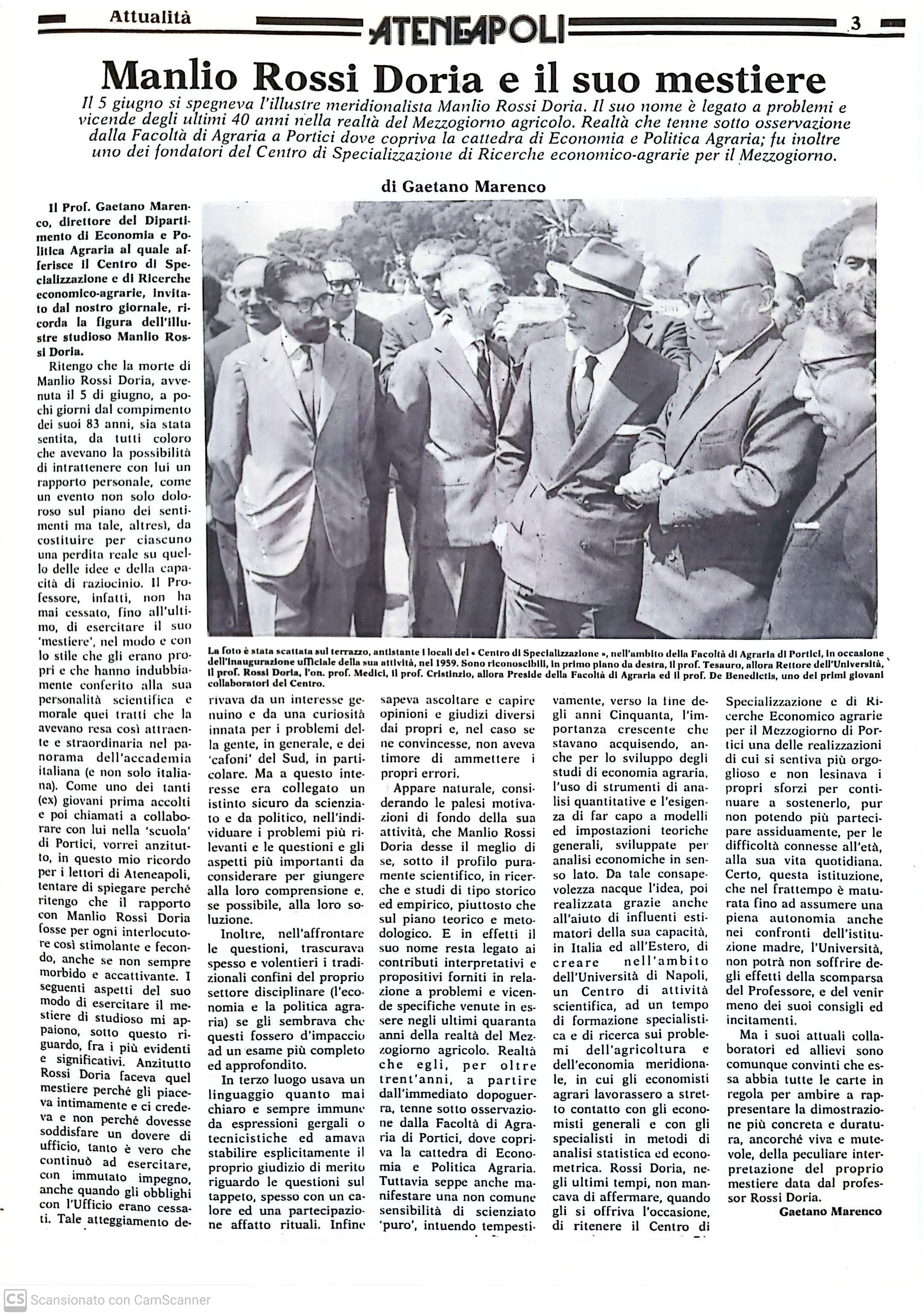 40 Anni Ateneapoli 1988 – Manlio Rossi Doria e il suo mestiere. Il 5 giugno si spegneva l’illustre meridionalista, il suo nome è legato a problemi e vicende degli ultimi 40 anni nella realtà del Mezzogiorno agricolo. 06/03/1988 0 187 Share FacebookTwitterWhatsAppEmailCopy URL ◼︎ Leggi ora l’articolo dall’archivio di ATENEAPOLI ◼︎ Vai alla pagina dedicata ai 40 anni Share FacebookTwitterWhatsAppEmailCopy URL Previous article1988 – Ma la mazzetta esiste? Viaggio tra una realtà che nell’ambiente universitario assume una certa consistenza. Dalla cifra pagata per un certificato in tempi rapidi, al “grazie dottò” in seduta di laurea; al bidello che offre servizi alloggio.Next article1988 – A Napoli la Fisica internazionale Desk3 - Advertisement - Articoli Correlati Elezioni Rettore Elezione del Rettore all’Università di Napoli “Federico II” 15/10/2025 Attualità Elezioni Rettore Federico II. Andrea Mazzucchi ufficializza la candidatura con “un progetto condiviso” 15/10/2025 Parthenope “Fare ricerca significa restituire alla società ciò che si apprende” 15/10/2025 Attualità Elezioni Rettore Federico II. Ufficializzata la prima candidatura: è quella del prof. Santolo Meo 15/10/2025 Suor Orsola Benincasa ‘Incontri sulle professioni’: il diritto che esce dall’aula 15/10/2025
