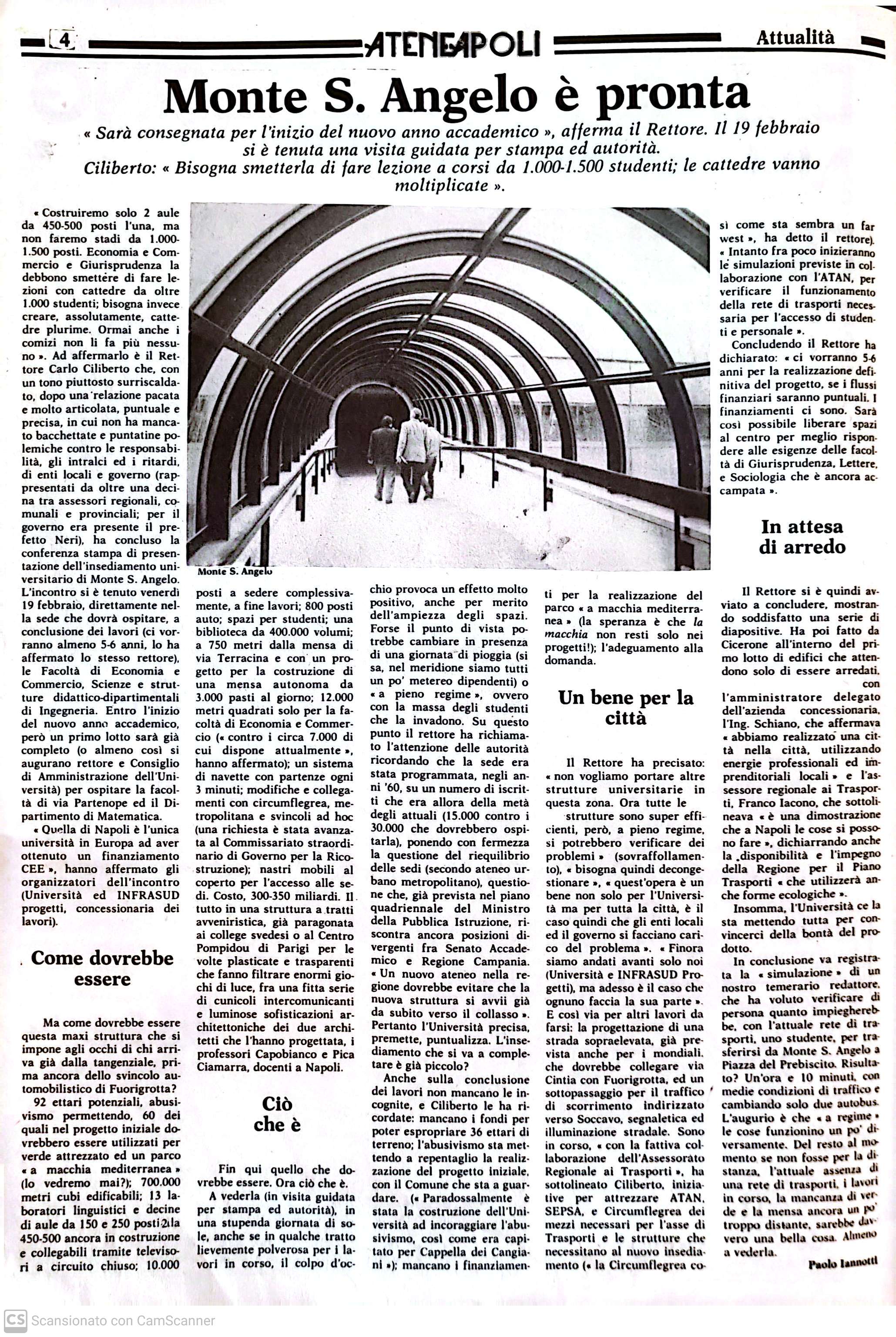 40 Anni Ateneapoli 1988 – Monte S. Angelo è pronta 06/03/1988 0 254 Share FacebookTwitterWhatsAppEmailCopy URL ◼︎ Leggi ora l’articolo dall’archivio di ATENEAPOLI ◼︎ Vai alla pagina dedicata ai 40 anni Share FacebookTwitterWhatsAppEmailCopy URL Previous article1988 (anno IV) Num. 4 di Ateneapoli del 26 febbraioNext article1988 – Aridateci via Mezzocannone! Una popolazione di sessantamila studenti transita ogni giorno in via Mezzocannone. Un SOS disperato per salvarla. Desk3 - Advertisement - Articoli Correlati Elezioni Rettore Elezione del Rettore all’Università di Napoli “Federico II” 15/10/2025 Attualità Elezioni Rettore Federico II. Andrea Mazzucchi ufficializza la candidatura con “un progetto condiviso” 15/10/2025 Parthenope “Fare ricerca significa restituire alla società ciò che si apprende” 15/10/2025 Attualità Elezioni Rettore Federico II. Ufficializzata la prima candidatura: è quella del prof. Santolo Meo 15/10/2025 Suor Orsola Benincasa ‘Incontri sulle professioni’: il diritto che esce dall’aula 15/10/2025