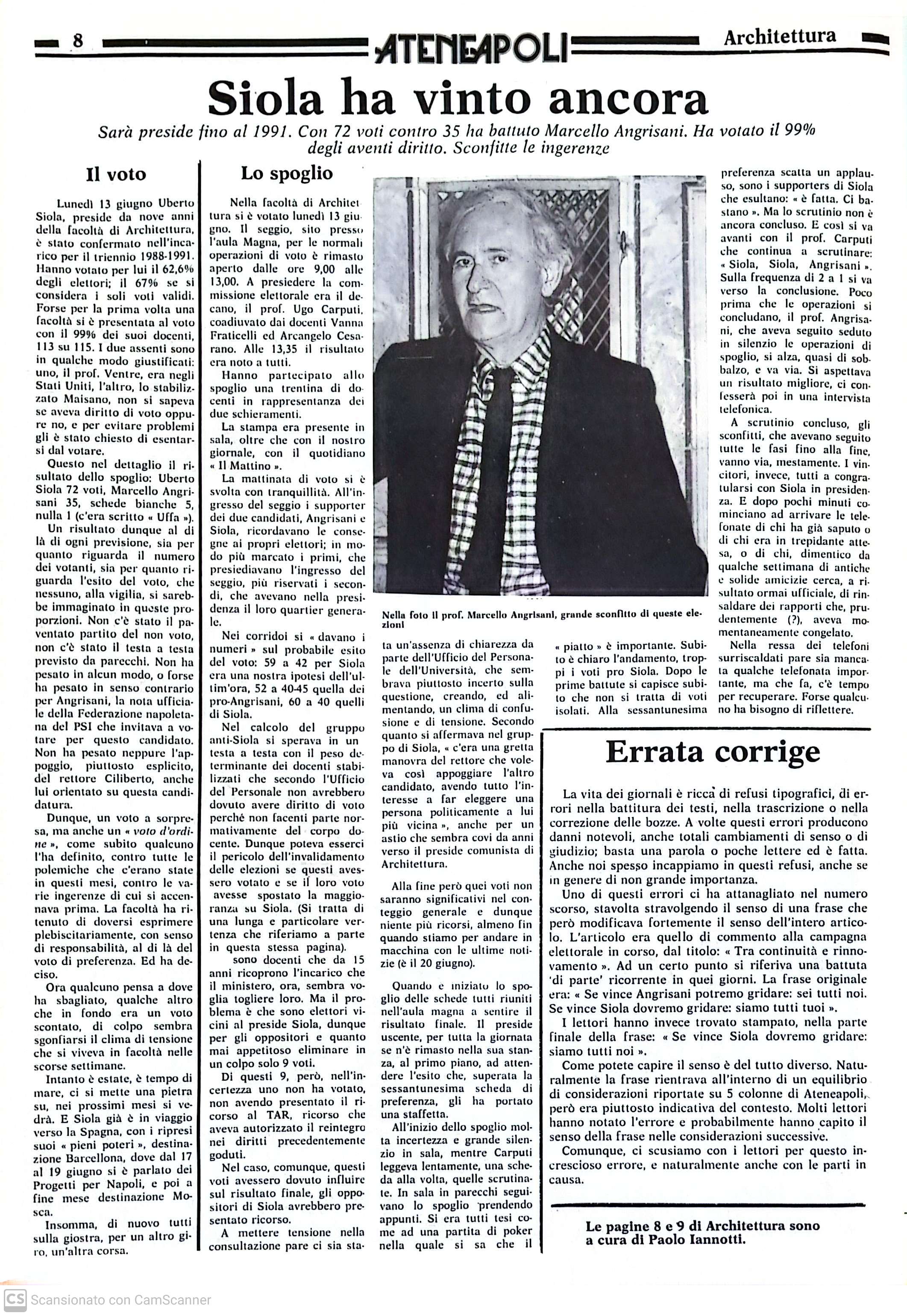 40 Anni Ateneapoli 1988 – Siola ha vinto ancora ad Architettura. Sarà preside fino al 1991. Con 72 voti contro 35 ha battuto Marcello Angrisani. Ha votato il 99% degli aventi diritto. Sconfitte le ingerenze. 10/03/1988 0 104 Share FacebookTwitterWhatsAppEmailCopy URL ◼︎ Leggi ora l’articolo dall’archivio di ATENEAPOLI ◼︎ Vai alla pagina dedicata ai 40 anni Share FacebookTwitterWhatsAppEmailCopy URL Previous article1988 – Professore non guardi il libretto! Sempre più frequente la prassi di sbirciare il libretto degli esaminandi. L'”oggetto” è spesso giudice infallibile delle studentesche sorti.Next article1988 – Il difficile trasferimento a Monte S. Angelo. Il vivace dibattito nell’Aula Magna di Economia e Commercio Desk3 - Advertisement - Articoli Correlati Suor Orsola Benincasa Le mani sull’arte: così si diventa restauratori 17/10/2025 L'Orientale Il 2025, l’anno “delle emozioni forti” per Raffaele Gala: ha rappresentato l’Italia in Cina 17/10/2025 Parthenope Il Prorettore Budillon: “Dobbiamo mantenere alta l’eccellenza della ricerca”. L’Ateneo ospiterà un ricercatore Fulbright proveniente da San Diego 17/10/2025 L. Vanvitelli Gettare lo sguardo oltre i confini dell’Europa: uno degli obiettivi della Vanvitelli in chiave internazionale 17/10/2025 Federico II Aspettative alte, gli studenti auspicano un percorso con una forte componente laboratoriale 17/10/2025