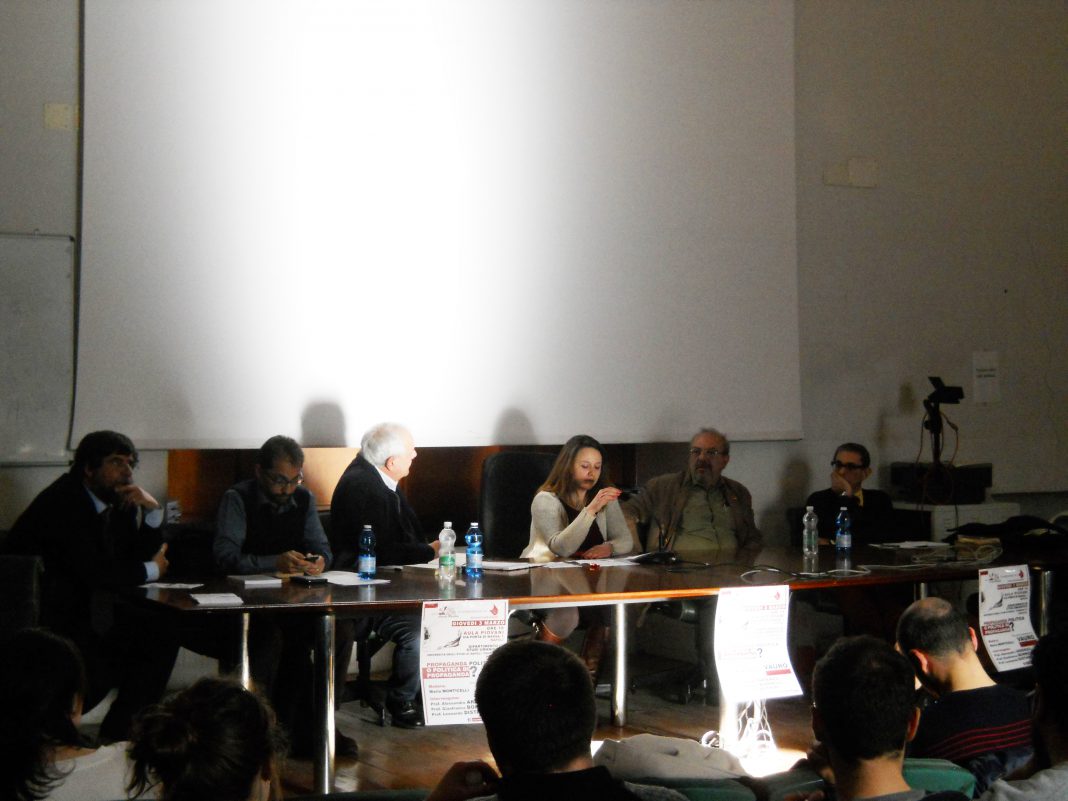 “Mi fa molto piacere poter salutare Vauro. Sono contento che partecipi a un incontro tanto stimolante che tocca un tema attuale e di rilievo”. Il saluto portato dal prof. Edoardo Massimilla, Direttore del Dipartimento di Studi Umanistici (DSU), ha dato il via a “Propaganda politica o politica di propaganda?”, un’iniziativa che, il pomeriggio del 3 marzo, nell’Aula Piovani, ha aperto le porte della Federico II a Vauro Senesi, celebre vignettista e volto noto del piccolo schermo. L’incontro, patrocinato dal DSU, ha portato la firma del Centro Studi Concetto Marchesi. Moderazione affidata a Maria Monticelli, uno dei membri del Centro, che ha ceduto la parola ai relatori della giornata confrontatisi con una platea numerosa che ha occupato tutti i posti a sedere. Un excursus storico sul tema della propaganda è stato sviluppato dal prof. Gianfranco Borrelli, docente di Storia delle dottrine politiche al Corso di Laurea in Filosofia. Partendo dagli autori latini, attraverso un’analisi delle diverse accezioni che il termine propaganda ha assunto tra le pagine di Lucrezio, Cicerone e Svetonio, il docente è arrivato alla situazione odierna, con una conclusione amara: “la propaganda politica non esiste più. Resta una politica di propaganda, che sottolinea l’evanescenza della politica stessa e che di certo non può essere soddisfacente”. Il secondo intervento è stato proprio dell’ospite d’onore, Vauro, che ha premesso: “non sono un professore, quindi non farò una lectio magistralis così esaustiva”. Sul tema della giornata: “la propaganda ha assunto un significato negativo, soprattutto perché intesa come un trucco della politica per nascondere le idee”. Di fronte a una evoluzione del genere, il nuovo obiettivo, a suo avviso, dovrebbe essere “riscoprire l’ideologia, così spesso demonizzata. È stato uno strumento importantissimo che l’umanità ha avuto per immaginare società e condizioni diverse da quelle vissute”. Ha quindi proseguito: “l’umanità deve essere utopica, perché, se non pensa a qualcosa che ancora non esiste, non può porsi una meta”. Tornando poi sul tema del simposio: “la propaganda oggi è fine a se stessa. Non serve a determinare un consenso, ma a soffocare il dissenso”. Avvalendosi di uno strumento preciso: “Internet è perfetto affinché il dissenso non si coalizzi. Ognuno crede di partecipare alla politica stando seduto dietro a una tastiera. La Rete è un contenitore dove ci stanno milioni di persone e un solo post dà la sensazione di essere parte di qualcosa di più grande”. L’auspicio finale è che “la politica torni a essere lo strumento di cambiamento per cui è nata”. Come funziona la propaganda e quali sono i suoi meccanismi nascosti? Ha provato a rispondere al quesito il professore di Estetica Leonardo Distaso che prima, però, ha colto l’occasione per regalare a Vauro un sigaro cubano del 1959 “è dell’anno della rivoluzione”. Attenzione fissata a un “cinema di evasione con all’interno un contenuto ideologico. L’86% del cinema nazionalsocialista era di intrattenimento. Comunicava il senso di quotidianità e raccontava una sfera privata libera dal dominio politico. Goebbels aveva capito la necessità dell’intrattenimento leggero per combattere la noia, ma anche per tranquillizzare il popolo. Tutto ciò fa capire quanto sia falsa la dicotomia fra propaganda ed evasione”. La religione cattolica del ‘500 e del ‘600, invece, è stato l’oggetto di discussione dell’ultimo relatore della giornata, il professore di Storia delle Dottrine Politiche Alessandro Arienzo: “costruire un orizzonte simbolico alternativo: è questo il nostro impegno di oggi”. Non è mancato, in conclusione, il confronto con il pubblico. “Piuttosto che combattere il vuoto della politica, non andrebbe affrontata una politica dominata dall’economia?”, chiede uno studente. Risposta affidata a Vauro: “la politica è strumento di opposizione e di rivoluzione. Uno degli elementi adottati dalla propaganda odierna è quello di far considerare la politica come qualcosa di sporco, invece può essere un fattore di cambiamento”. Rivolgendosi ancora al vignettista, una studentessa: “la satira è una causa del ‘non pensiero unico’?”. No: “oggi è sostituita molto dalla comicità, come quella di Zelig o di Zalone, così molte persone finiscono per fare confusione tra le due. La satira è diversa. In essa, la risata può essere un effetto collaterale. È la quintessenza dello strumento critico”. Chiusura con una terza domanda: “che peso hanno avuto i media nell’anestetizzare le nuove generazioni?”. La risposta sa di mea culpa: “è ovvio che ne abbiano avuto, soprattutto perché i media sono di proprietà di poteri finanziari. Però credo che la mia generazione, per qualche motivo a me sconosciuto, abbia smesso di fare comunicazione. C’è stata una frattura generazionale”. Non mancano, però, i margini per risollevarsi: “fa piacere vedere oggi così tanti giovani interessati. Dimostrano che la società è ancora viva. Noi tutti dobbiamo creare le occasioni affinché tali vitalità possano incontrarsi”.