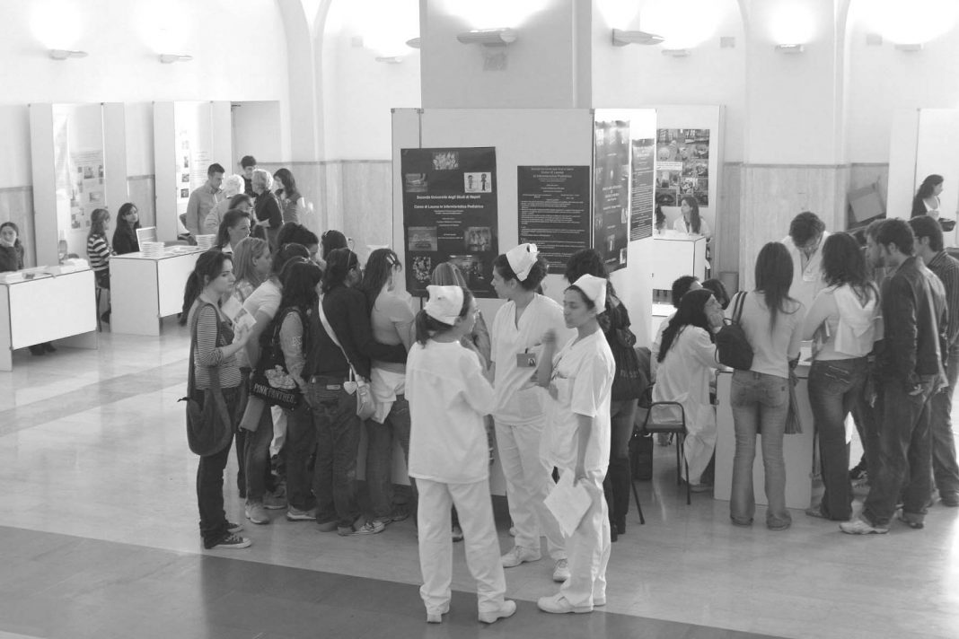“E’ stata una giornata molto interessante – commenta Francesco, studente all’Elena di Savoia di Napoli – e poi Medicina, con tutti i suoi corsi di laurea, è una delle facoltà con più sbocchi occupazionali”. D’accordo con lui, anche Francesco, al quinto anno di liceo scientifico, che ha già deciso: “Adesso mi è tutto più chiaro. Credo che sceglierò Tecnica della Riabilitazione psichiatrica”. I ragazzi sono interessati dalle nuove professioni, e sono in tanti che chiedono spiegazioni alla prof.ssa Annamaria Avella, docente al Corso di laurea in Ortottica e Assistenza Oftalmologica, per il quale ci sono solo 10 posti. “Il primo anno è davvero duro – spiegano Giuseppina Moiese e Maria Grazia Tessitore, studentesse che sono riuscite ad entrare in quei dieci posti – Si studia molto. Di mattina si fa tirocinio e di pomeriggio si seguono i corsi, ma ci sono anche lati positivi. Essendo pochi, abbiamo un contatto diretto con i nostri docenti e poi, dopo tre anni, abbiamo finito. Possiamo scegliere di continuare con una specialistica ma intanto abbiamo già l’opportunità di lavorare”. Anche le studentesse di Infermieristica pediatrica (Corso di Laurea che ammette 30 persone), nelle loro candide uniformi, attirano tanti ragazzi. “Al primo anno, siamo già a contatto con i bambini; possiamo svolgere alcuni test come l’esame delle urine – spiegano Francesca Ronca e Antonia Solerte, studentesse al primo anno – Quello che conta di più è la passione per i bambini e per questo lavoro e tanta pazienza”.