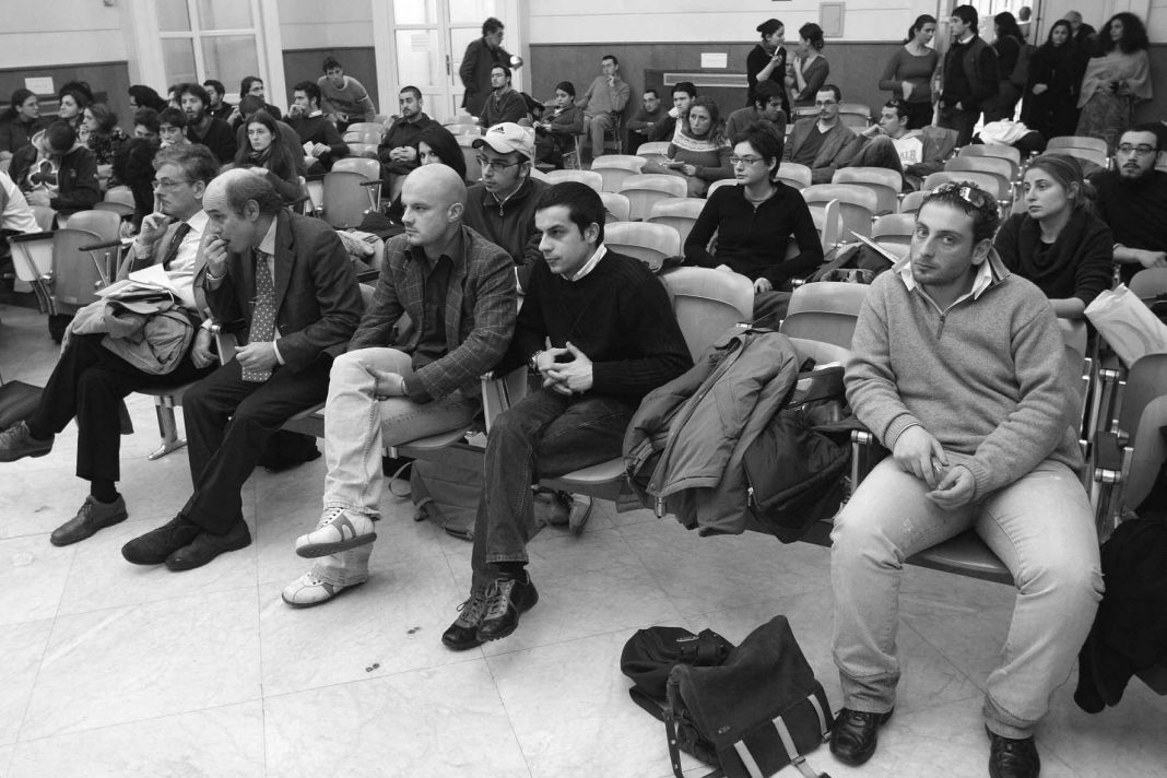 Al microfono si alternano gli studenti dell’Interfacoltà. Spiegano le loro ragioni. Vogliono parlare. E scagliare la loro verità come fendenti. Per colpire al cuore un sistema che “ci ferisce, ci umilia, ci rende macchine da crediti. Nulla più”. “Lo sbarramento per il passaggio da un anno all’altro di corso è una sorta di sistema sanzionatorio che a noi non piace. Ci sembra di essere trattati come bambini cui viene detto come studiare”, esordisce Daniele, terzo anno di Giurisprudenza, moderatore dell’incontro. E ancora: “al momento le specialistiche del Federico II non sono a numero chiuso, ma solo perché non ci sono ancora molti laureati triennali. E dopo? Come si comporterà il nostro Ateneo quando entreremo a pieno regime?”.