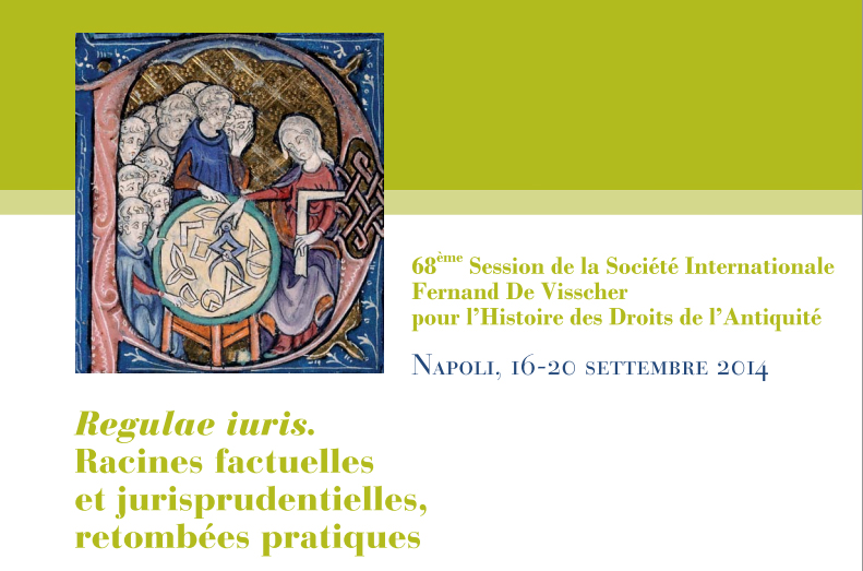 al 19 settembre 2014, il Congresso sulla 68ème session de la Société Internationale pour l’Histoire des Droits de l’Antiquité Fernand De Visscher, sul tema “Regulae iuris. Racines factuelles et jurisprudentielles, retombées pratiques”.