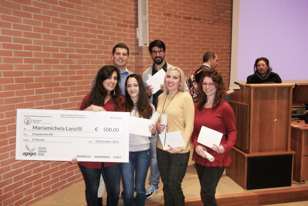La giornata dedicata alle Biotecnologie Industriali si chiude con il momento tanto atteso della premiazione dei migliori studenti, laureati fra giugno 2014 e marzo 2015. Selezionati dalla commissione presieduta dalla prof.ssa Renata Piccoli e costituita dai docenti Viola Calabrò, Giuseppe Oliviero e dalla ricercatrice Alessandra Piscitelli, sulla base di un regolamento che ha tenuto conto del curriculum comprendendo, nella valutazione, anche le lodi e il tempo impiegato. “Il regolamento è pubblico, se pensate che possa essere migliorato, siamo a disposizione – afferma la prof.ssa Piccoli che si definisce ‘una docente della prima ora’ del Corso di Studi – Abbiamo lavorato in maniera molto intensa in questi anni, con colleghi e studenti. Penso che giornate come questa aiutino chi è ai primi anni e ha ancora tanti dubbi a buttare un occhio sul futuro e capire che i professori non sono né lontani, né terribili, che i programmi sono sostenibili e che quello che si deve attraversare non è un lungo tunnel buio”.