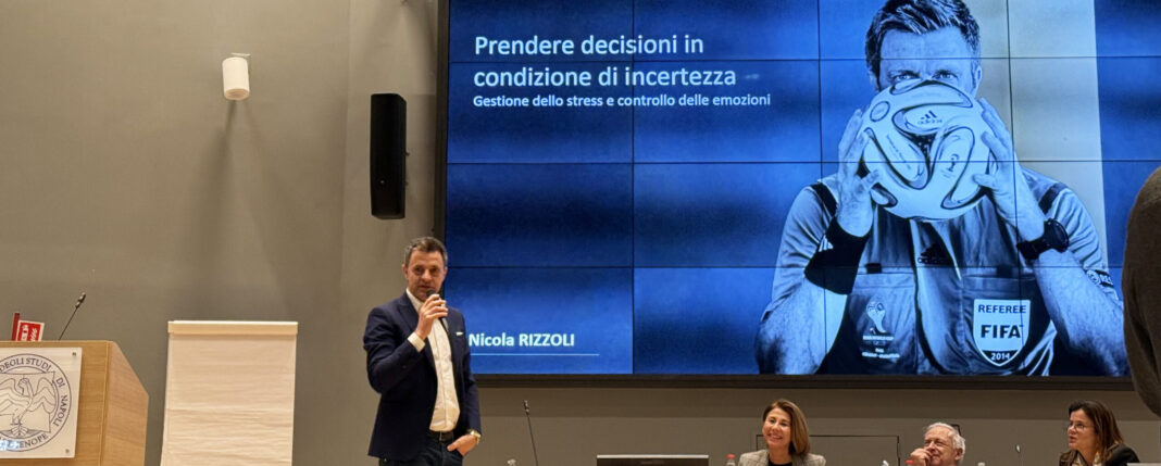 Prendere decisioni in momenti di stress, gestire la pressione e controllare le emozioni. Nel mondo dello sport e non solo. Sono stati questi i temi al centro dell’incontro con Nicola Rizzoli, ex arbitro internazionale e oggi formatore sui temi della leadership e della gestione dello stress, ospite dell’Università Parthenope, l’11 marzo, per un talk dedicato alle dinamiche decisionali nei contesti complessi.