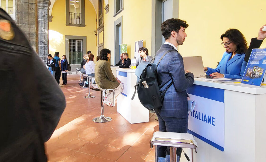I nomi che si leggono sugli stand posizionati lungo tutto il porticato sono tanti e importanti: da alcune delle ‘Big Four’ (KPMG e PWC) a Intesa San Paolo, passando per Amnesty International e Croce Rossa Italiana, ma anche Grimaldi, Unicredit e BNL e altri ancora. Tra colloqui one-to-one all’ombra degli alberi e CV che brillano sotto il sole di un ottobre che continua a regalare giornate quasi estive, anche la scelta della sede si è rivelata premiante, regalando all’evento un’atmosfera rilassata e informale che ha messo a proprio agio chi è alle prime armi con i colloqui di lavoro.