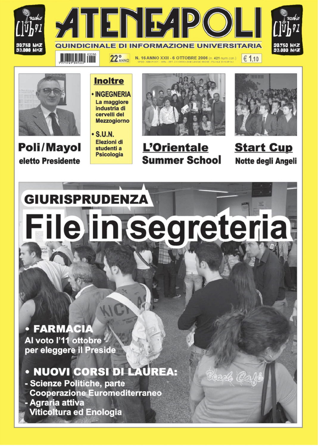 Giornale 2006 (anno XXII) Num. 16 di Ateneapoli del 6 ottobre 06/10/2006 0 94 Share FacebookTwitterWhatsAppEmailCopy URL Scarica gratuitamente il giornale in formato pdf Share FacebookTwitterWhatsAppEmailCopy URL Previous article2006 (anno XXII) Num. 14-15 GUIDA UNIVERSITARIA 2° PARTE di Ateneapoli del 8 settembreNext article2006 (anno XXII) Num. 17 di Ateneapoli del 20 ottobre Desk Quattro - Advertisement - Articoli Correlati Attualità Elezioni Rettore Federico II. Andrea Mazzucchi ufficializza la candidatura con “un progetto condiviso” 15/10/2025 L'Orientale Cleodicee, “voglio rendere il mondo un posto migliore per le donne” 15/10/2025 Elezioni Rettore Elezione del Rettore all’Università di Napoli “Federico II” 15/10/2025 Attualità Elezioni Rettore Federico II. Ufficializzata la prima candidatura: è quella del prof. Santolo Meo 15/10/2025 L. Vanvitelli “Laurearsi giovani è un investimento che rende” 15/10/2025