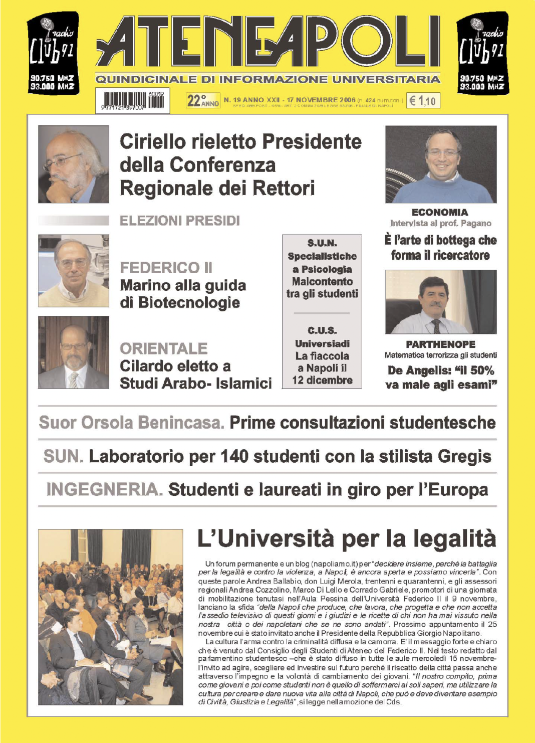Giornale 2006 (anno XXII) Num. 19 di Ateneapoli del 17 novembre 17/11/2006 0 74 Share FacebookTwitterWhatsAppEmailCopy URL Scarica gratuitamente il giornale in formato pdf Share FacebookTwitterWhatsAppEmailCopy URL Previous article2006 (anno XXII) Num. 18 di Ateneapoli del 3 novembreNext article2006 (anno XXII) Num. 20 di Ateneapoli del 7 dicembre Desk Quattro - Advertisement - Articoli Correlati Attualità Elezioni Rettore Federico II. Andrea Mazzucchi ufficializza la candidatura con “un progetto condiviso” 15/10/2025 L'Orientale Cleodicee, “voglio rendere il mondo un posto migliore per le donne” 15/10/2025 Elezioni Rettore Elezione del Rettore all’Università di Napoli “Federico II” 15/10/2025 Attualità Elezioni Rettore Federico II. Ufficializzata la prima candidatura: è quella del prof. Santolo Meo 15/10/2025 L. Vanvitelli “Laurearsi giovani è un investimento che rende” 15/10/2025