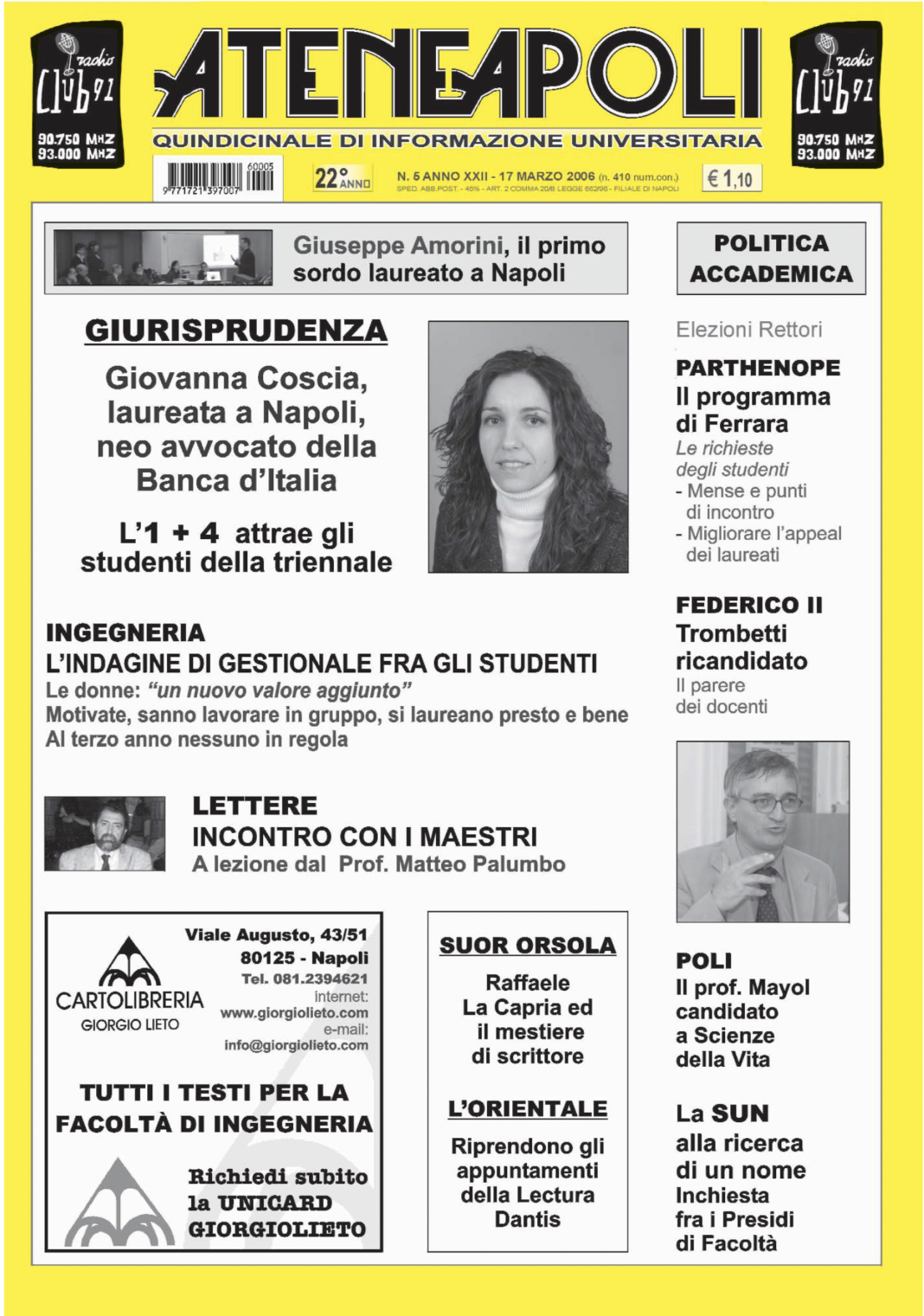 Giornale 2006 (anno XXII) Num. 5 di Ateneapoli del 17 marzo 17/03/2006 0 140 Share FacebookTwitterWhatsAppEmailCopy URL Scarica GRATUITAMENTE il giornale in formato pdf Share FacebookTwitterWhatsAppEmailCopy URL Previous article2006 (anno XXII) Num. 4 di Ateneapoli del 3 marzoNext article2006 (anno XXII) Num. 6 di Ateneapoli del 31 marzo Desk Due - Advertisement - Articoli Correlati Parthenope “Un valore aggiunto” le classi composte da studenti di Paesi diversi 13/10/2025 Federico II Un “tirocinio extracurriculare a Boston” per alcuni studenti che “stanno vivendo un sogno” 13/10/2025 Federico II Vincenza Ferrara, laurea Magistrale a pieni voti con lode, racconta il suo percorso a Biologia 13/10/2025 Federico II Studi Umanistici e Scienze Sociali: i rappresentanti degli studenti di Link chiedono lo stop agli accordi di ricerca con Israele 13/10/2025 Federico II Emanuela Barone neo Presidente del parlamentino studentesco di Dipartimento 13/10/2025