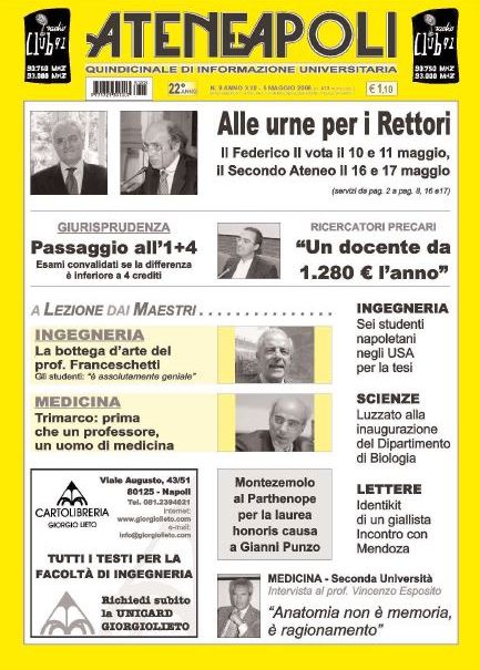 GiornaleNews 2006 (anno XXII) Num. 8 di Ateneapoli del 5 maggio 05/05/2006 0 149 Share FacebookTwitterWhatsAppEmailCopy URL Scarica GRATUITAMENTE il giornale in formato pdf Share FacebookTwitterWhatsAppEmailCopy URL Previous article2006 (anno XXII) Num. 7 di Ateneapoli del 20 aprileNext article2006 (anno XXII) Num. 9 di Ateneapoli del 19 maggio Desk Quattro - Advertisement - Articoli Correlati Federico II Scienze e Tecnologie della Chimica Industriale. Priorità: “monitorare come sta funzionando il nuovo regolamento” 14/10/2025 L'Orientale Almamed, un progetto per “far comunicare le varie aree del Mediterraneo” attraverso gli archivi letterari 14/10/2025 Parthenope “Un valore aggiunto” le classi composte da studenti di Paesi diversi 13/10/2025 Federico II Un “tirocinio extracurriculare a Boston” per alcuni studenti che “stanno vivendo un sogno” 13/10/2025 Federico II Vincenza Ferrara, laurea Magistrale a pieni voti con lode, racconta il suo percorso a Biologia 13/10/2025