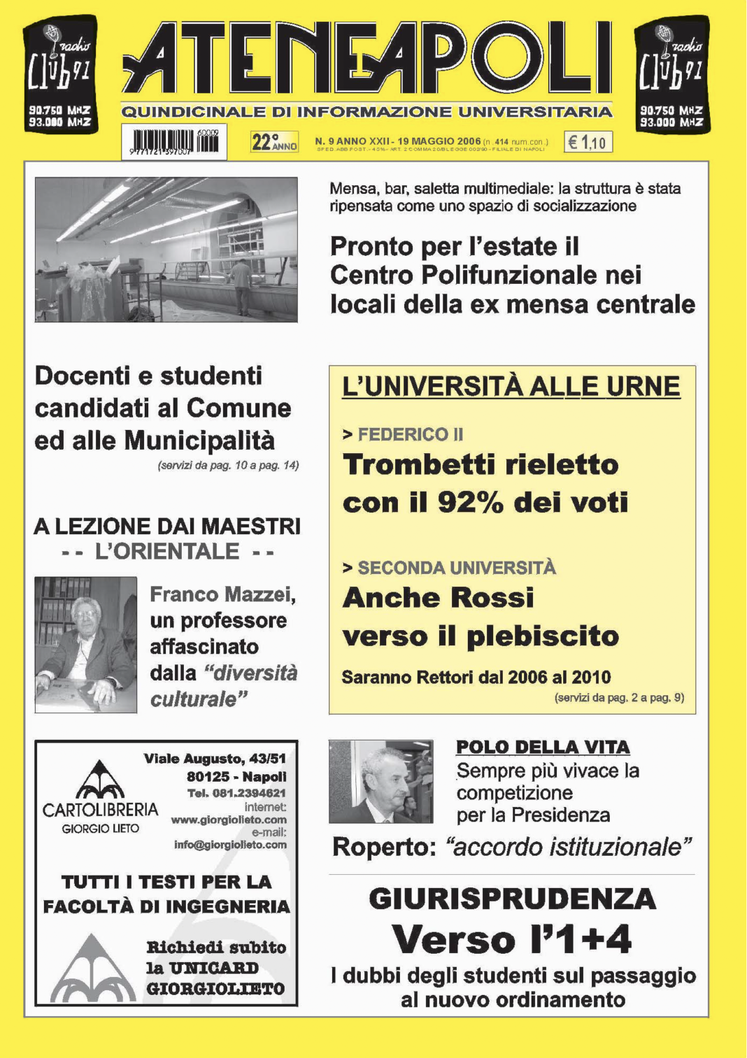 Giornale 2006 (anno XXII) Num. 9 di Ateneapoli del 19 maggio 19/05/2006 0 129 Share FacebookTwitterWhatsAppEmailCopy URL Scarica GRATUITAMENTE il giornale in formato pdf Share FacebookTwitterWhatsAppEmailCopy URL Previous article2006 (anno XXII) Num. 8 di Ateneapoli del 5 maggioNext article2006 (anno XXII) Num. 10 di Ateneapoli del 2 giugno Desk Quattro - Advertisement - Articoli Correlati Federico II Scienze e Tecnologie della Chimica Industriale. Priorità: “monitorare come sta funzionando il nuovo regolamento” 14/10/2025 L'Orientale Almamed, un progetto per “far comunicare le varie aree del Mediterraneo” attraverso gli archivi letterari 14/10/2025 Parthenope “Un valore aggiunto” le classi composte da studenti di Paesi diversi 13/10/2025 Federico II Un “tirocinio extracurriculare a Boston” per alcuni studenti che “stanno vivendo un sogno” 13/10/2025 Federico II Vincenza Ferrara, laurea Magistrale a pieni voti con lode, racconta il suo percorso a Biologia 13/10/2025