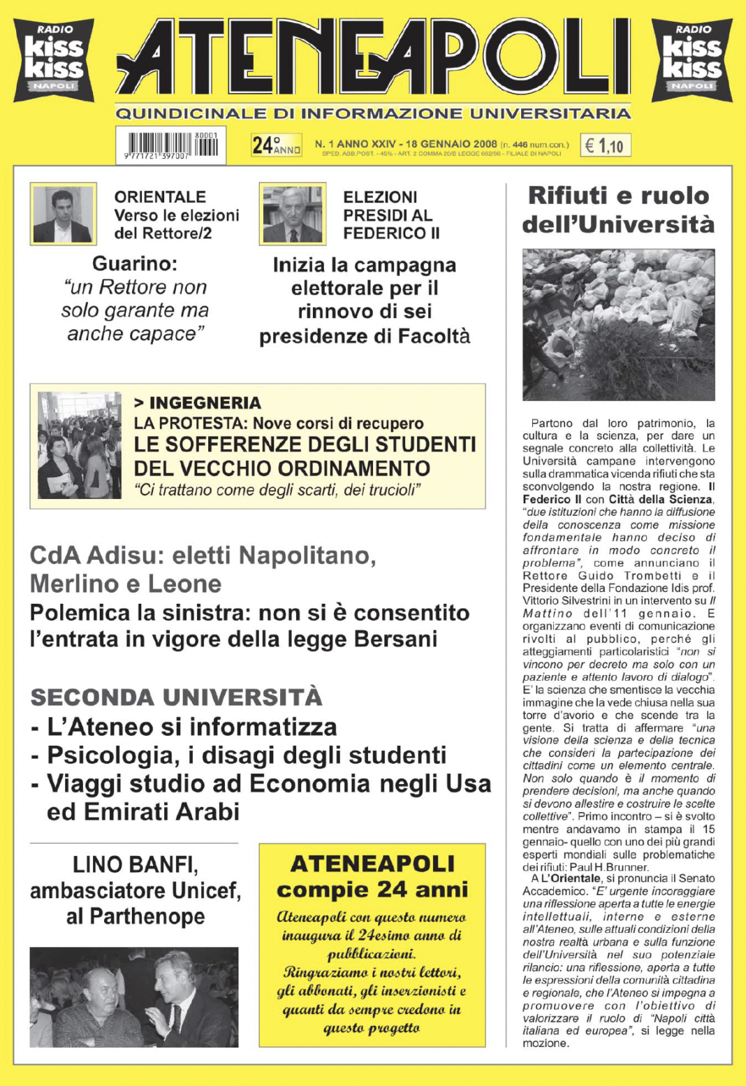Giornale 2008 (anno XXIV) Num. 1 di Ateneapoli del 18 gennaio 18/01/2008 0 132 Share FacebookTwitterWhatsAppEmailCopy URL Scarica gratuitamente il giornale in formato pdf Share FacebookTwitterWhatsAppEmailCopy URL Previous article2007 (anno XXIII) Num. 20 di Ateneapoli del 7 dicembreNext article2008 (anno XXIV) Num. 2 di Ateneapoli del 1 febbraio Desk Quattro - Advertisement - Articoli Correlati Attualità Elezioni Rettore Federico II. Andrea Mazzucchi ufficializza la candidatura con “un progetto condiviso” 15/10/2025 L'Orientale Cleodicee, “voglio rendere il mondo un posto migliore per le donne” 15/10/2025 Elezioni Rettore Elezione del Rettore all’Università di Napoli “Federico II” 15/10/2025 Attualità Elezioni Rettore Federico II. Ufficializzata la prima candidatura: è quella del prof. Santolo Meo 15/10/2025 L. Vanvitelli “Laurearsi giovani è un investimento che rende” 15/10/2025