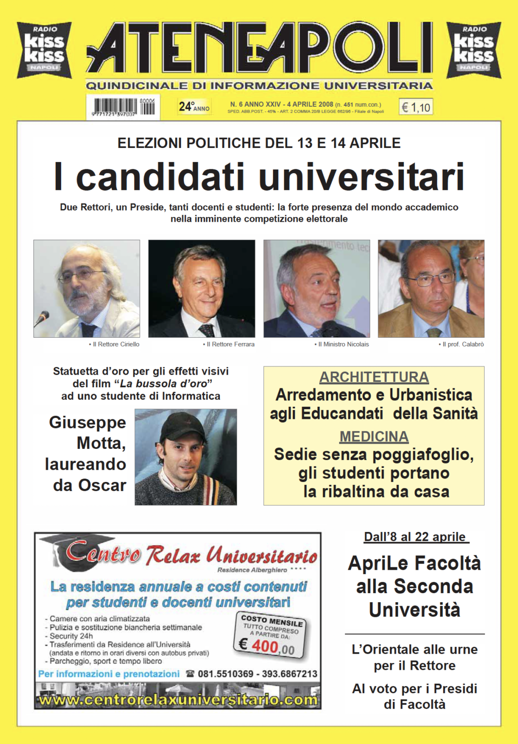 Giornale 2008 (anno XXIV) Num. 6 di Ateneapoli del 4 aprile 04/04/2008 0 156 Share FacebookTwitterWhatsAppEmailCopy URL Scarica gratuitamente il giornale in formato pdf Share FacebookTwitterWhatsAppEmailCopy URL Previous article2008 (anno XXIV) Num. 5 di Ateneapoli del 14 marzoNext article2008 (anno XXIV) Num. 7 di Ateneapoli del 18 aprile Desk Quattro - Advertisement - Articoli Correlati Attualità Elezioni Rettore Federico II. Andrea Mazzucchi ufficializza la candidatura con “un progetto condiviso” 15/10/2025 L'Orientale Cleodicee, “voglio rendere il mondo un posto migliore per le donne” 15/10/2025 Elezioni Rettore Elezione del Rettore all’Università di Napoli “Federico II” 15/10/2025 Attualità Elezioni Rettore Federico II. Ufficializzata la prima candidatura: è quella del prof. Santolo Meo 15/10/2025 L. Vanvitelli “Laurearsi giovani è un investimento che rende” 15/10/2025