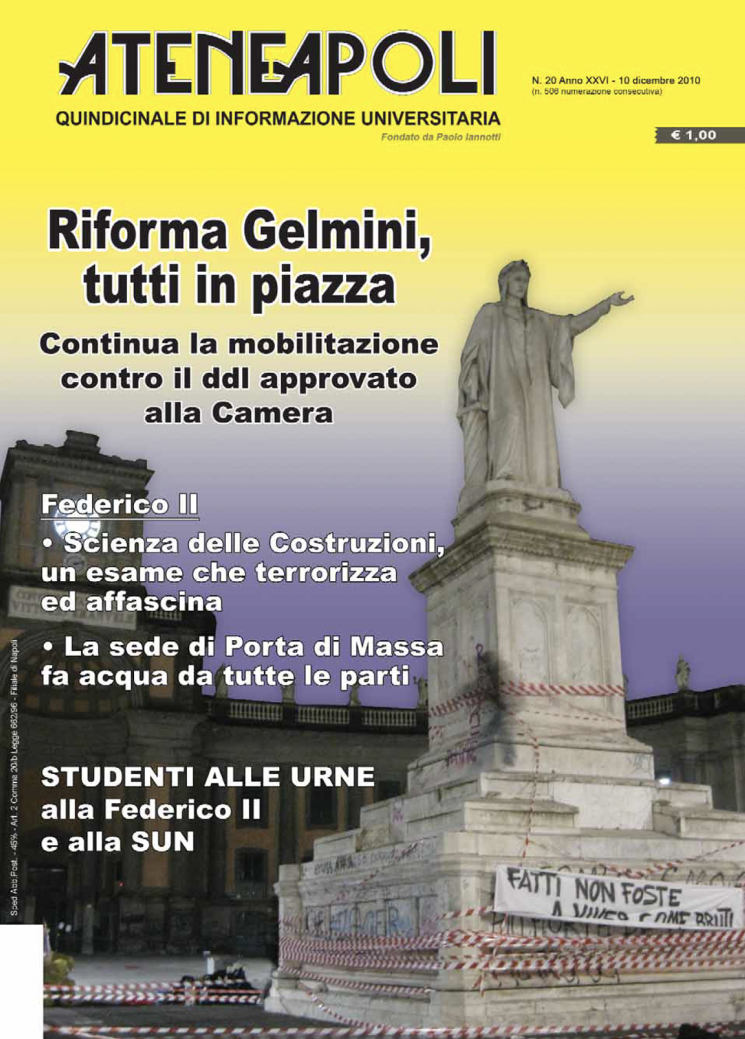 Giornale 2010 (anno XXVI) Num. 20 di Ateneapoli del 10 dicembre 10/12/2010 0 111 Share FacebookTwitterWhatsAppEmailCopy URL Scarica GRATUITAMENTE il giornale in formato pdf Share FacebookTwitterWhatsAppEmailCopy URL Previous article2010 (anno XXVI) Num. 19 di Ateneapoli del 26 novembreNext article2011 (anno XXVII) Num. 1 di Ateneapoli del 21 gennaio Desk Quattro - Advertisement - Articoli Correlati Attualità Elezioni Rettore Federico II. Andrea Mazzucchi ufficializza la candidatura con “un progetto condiviso” 16/10/2025 L. Vanvitelli Prospettive professionali post-laurea: incontro con la Coldiretti 16/10/2025 Attualità Elezioni Rettore Federico II. Ufficializzata la prima candidatura: è quella del prof. Santolo Meo 16/10/2025 Scuola Superiore Meridionale Taglio seminariale delle lezioni ed escursioni sul campo per gli allievi ordinari 16/10/2025 Attualità Un docente-scrittore, Gionata De Vico 16/10/2025