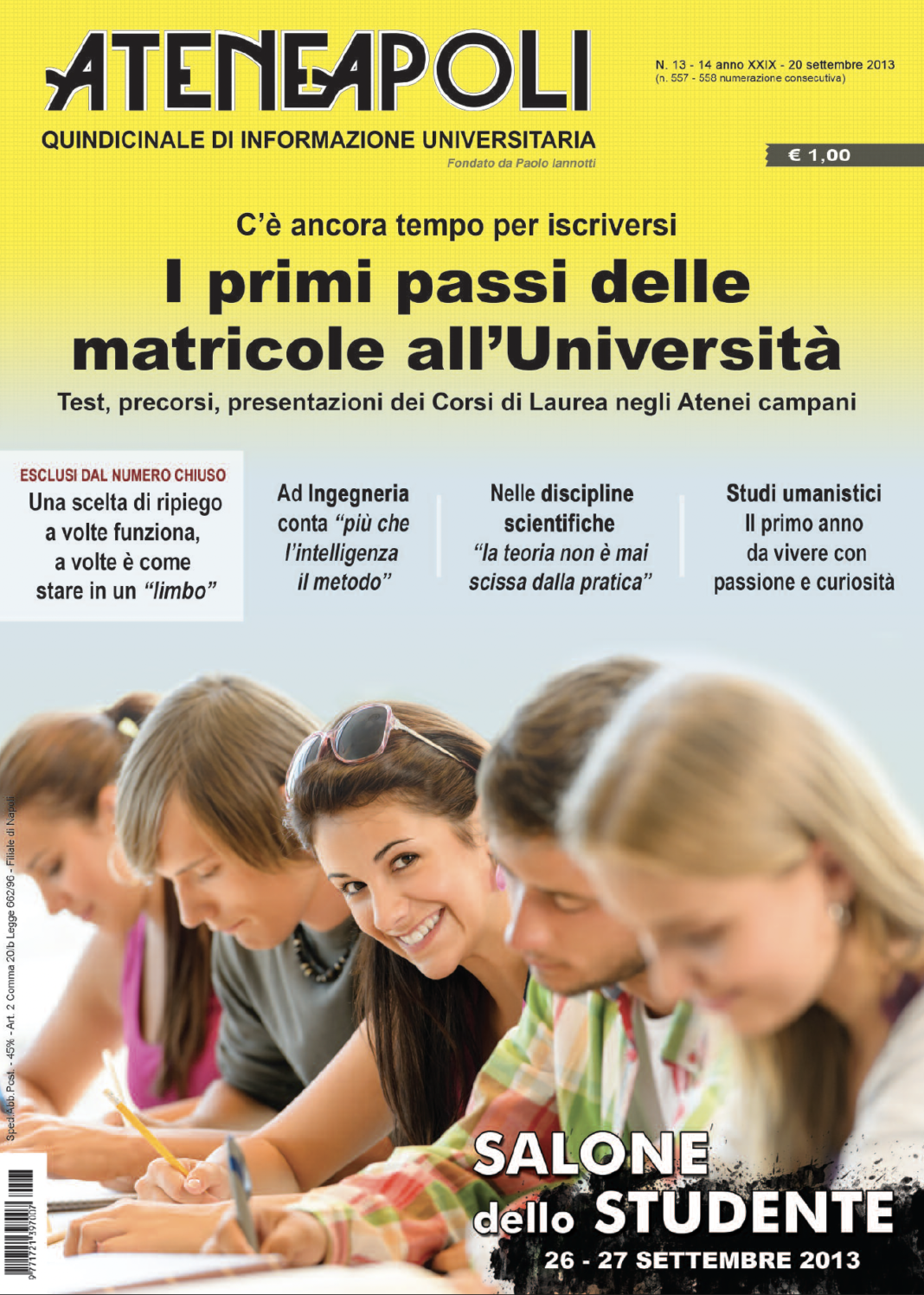Giornale 2013 (anno XXIX) Num. 13-14 di Ateneapoli del 20 settembre 20/09/2013 0 107 Share FacebookTwitterWhatsAppEmailCopy URL Scarica GRATUITAMENTE il giornale in formato pdf Share FacebookTwitterWhatsAppEmailCopy URL Previous article2013 (anno XXIX) Num. 11-12 GUIDA UNIVERSITARIA di Ateneapoli di luglio-agostoNext article2013 (anno XXIX) Num. 15-16 di Ateneapoli del 11 ottobre Desk Quattro - Advertisement - Articoli Correlati Attualità Elezioni Rettore Federico II. Andrea Mazzucchi ufficializza la candidatura con “un progetto condiviso” 15/10/2025 L'Orientale Cleodicee, “voglio rendere il mondo un posto migliore per le donne” 15/10/2025 Elezioni Rettore Elezione del Rettore all’Università di Napoli “Federico II” 15/10/2025 Attualità Elezioni Rettore Federico II. Ufficializzata la prima candidatura: è quella del prof. Santolo Meo 15/10/2025 L. Vanvitelli “Laurearsi giovani è un investimento che rende” 15/10/2025