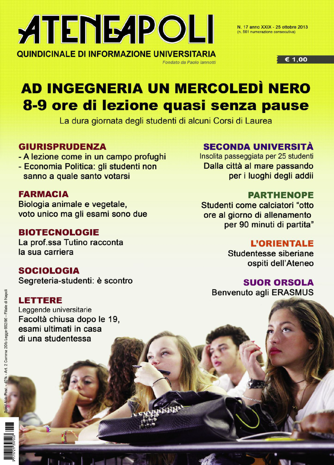Giornale 2013 (anno XXIX) Num. 17 di Ateneapoli del 25 ottobre 25/10/2013 0 82 Share FacebookTwitterWhatsAppEmailCopy URL Scarica GRATUITAMENTE il giornale in formato pdf Share FacebookTwitterWhatsAppEmailCopy URL Previous article2013 (anno XXIX) Num. 15-16 di Ateneapoli del 11 ottobreNext article2013 (anno XXIX) Num. 18 di Ateneapoli del 8 novembre Desk Quattro - Advertisement - Articoli Correlati Attualità Elezioni Rettore Federico II. Andrea Mazzucchi ufficializza la candidatura con “un progetto condiviso” 15/10/2025 L'Orientale Cleodicee, “voglio rendere il mondo un posto migliore per le donne” 15/10/2025 Elezioni Rettore Elezione del Rettore all’Università di Napoli “Federico II” 15/10/2025 Attualità Elezioni Rettore Federico II. Ufficializzata la prima candidatura: è quella del prof. Santolo Meo 15/10/2025 L. Vanvitelli “Laurearsi giovani è un investimento che rende” 15/10/2025