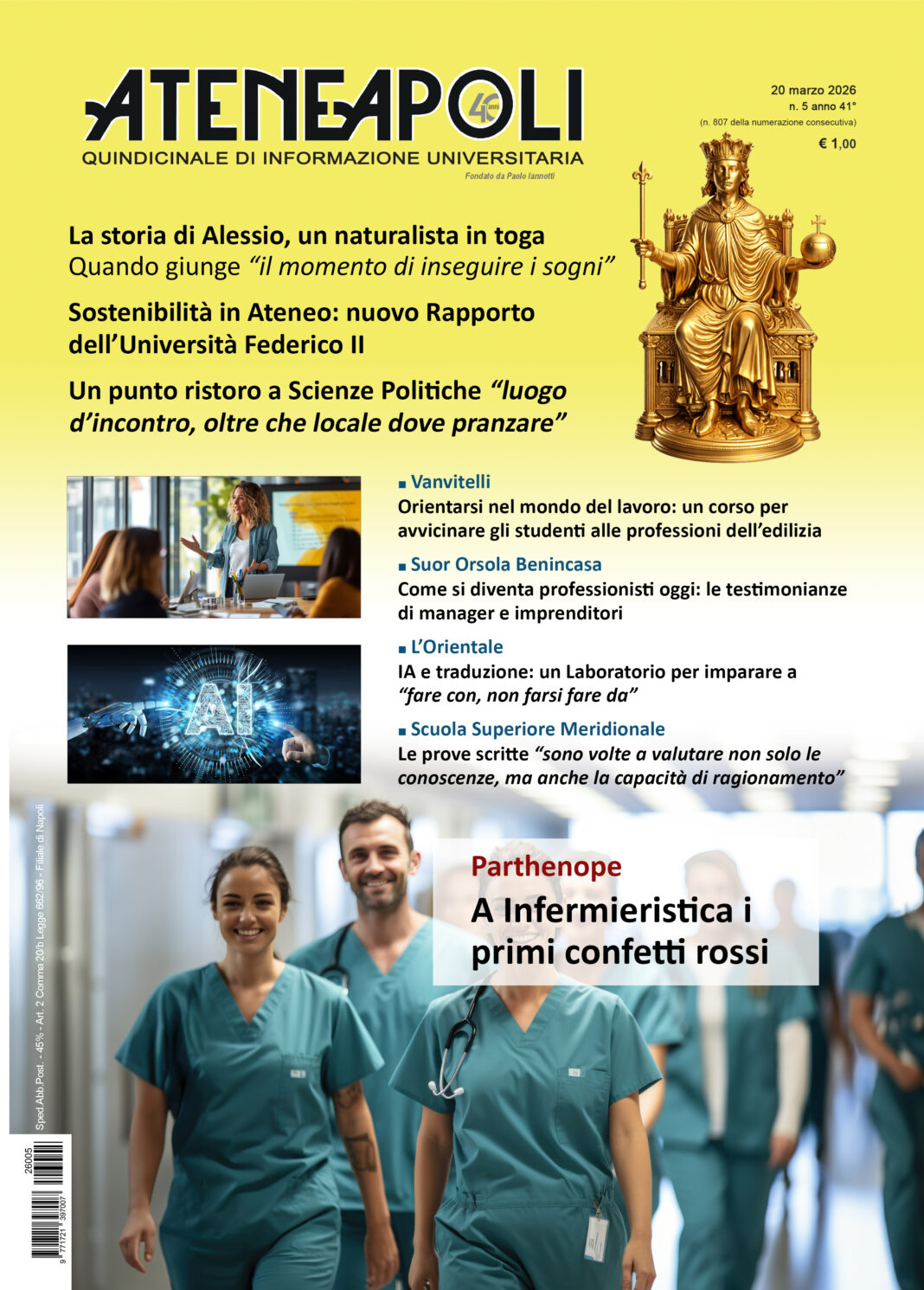 Giornale 2026 (anno 41°) Num. 5 di Ateneapoli del 20 marzo 18/03/2026 0 220 Share FacebookTwitterWhatsAppEmailCopy URL Scarica GRATUITAMENTE il giornale in formato pdf Share FacebookTwitterWhatsAppEmailCopy URL Previous articleAttività di mediazione culturale per un approccio pratico all’apprendimento del francese desk tre - Advertisement - Articoli Correlati Federico II Attività di mediazione culturale per un approccio pratico all’apprendimento del francese 13/03/2026 Federico II Archeologia, Storia delle Arti e Scienze del Patrimonio culturale. Protostoria del Mediterraneo: al via un nuovo insegnamento 13/03/2026 Federico II ‘Il medico, il giurista e il filosofo di fronte al suicidio assistito’ 13/03/2026 Federico II In preparazione il bando di ammissione per il prossimo anno. Buona frequenza in aula per Biology for One Health 13/03/2026 Federico II NEWS*** La Commissione Bilancio boccia il doppio mandato per i Rettori 12/03/2026